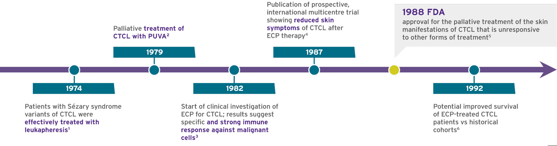 1. Edelson R, et al. N Engl J Med. 1974;291:293-294. 2. Gilchrest BA. Cancer Treat Rep. 1979;63:663-667. 3. Knobler R, et al. Med Clin North Am. 1986;70:109-138. 4.Edelson R, et al. N Engl J Med. 1987;316:297-303. 5.UVADEXTMPrescribing Information 2020. 6. Heald P, et al. J Am Acad Dermatol. 1992;27:427-433. 7. Owsianowski M, et al. Bone Marrow Transplant. 1994;14:845-848. 8. Andreu G, et al. J Heart Lung Transplant. 1995;14:793-796. 9. Barr ML, et al. N Engl J Med. 1998;339:1744-1751. 10. Greinix HT, et al. Haematologica. 2006;91(3):405-408. 11. Couriel DR, et al. Blood. 2006;107(8):3074-3080. 12. Benden C, et al. Transplantation. 2008;86(11):1625-1627. 13.Flowers MED, et al. Blood. 2008;112:2667-2674. 14. Quaglino P, et al. Int J Immunopathol Pharmacol. 2009;22:353-362. 15.Papp G, et al. Clin Immunol. 2012;142:150-159. 16. Horina et al. The Lancet. 1995;346:61. 17. Sunder-Plassman et al. The Lancet. 1995;346(8973):506.